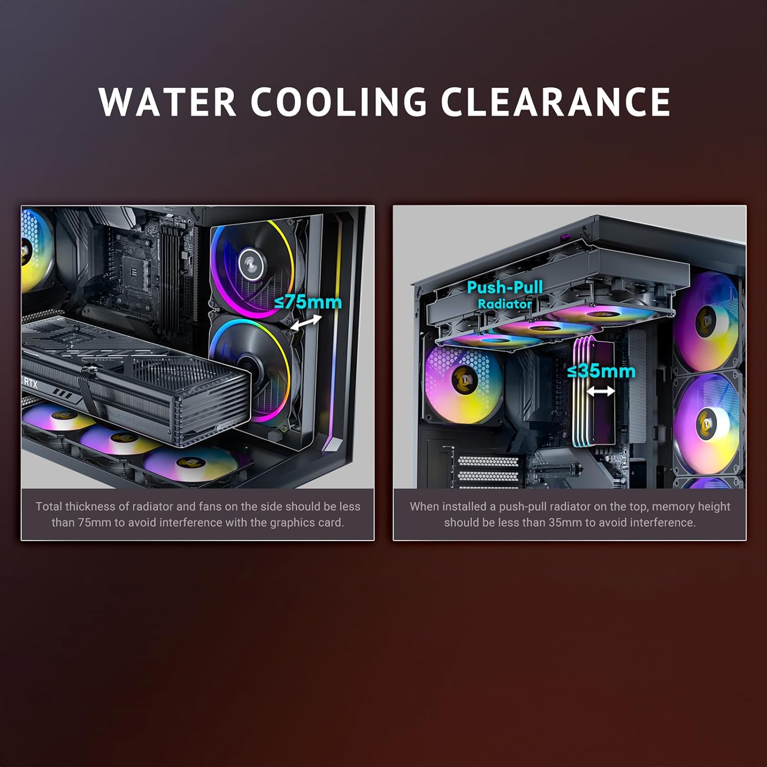 - 7 ventiladores PWM ARGB preinstalados, incluyendo 6 ventiladores de marcha atrás.