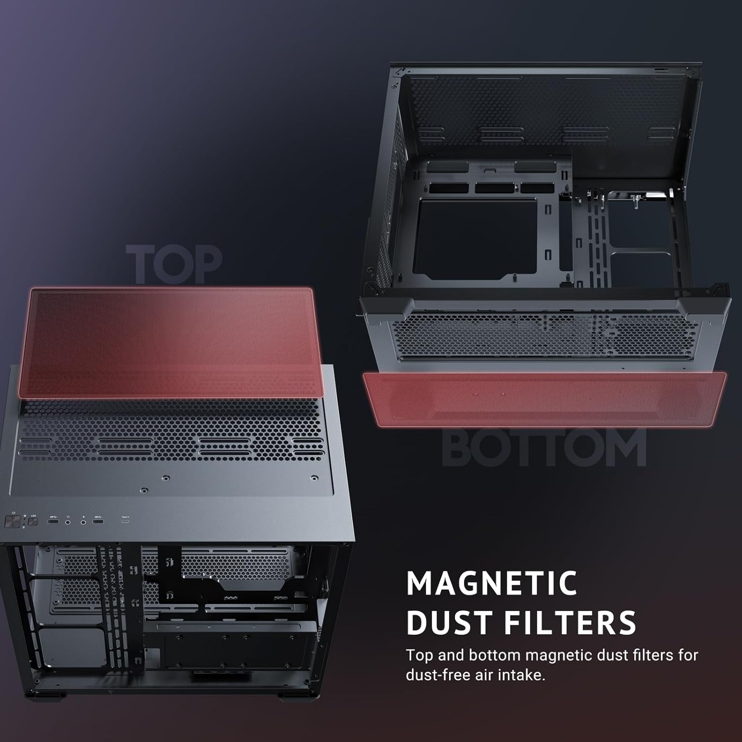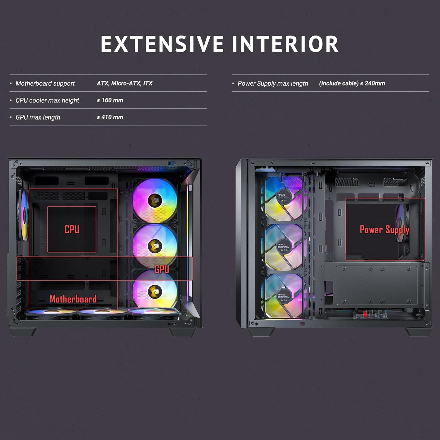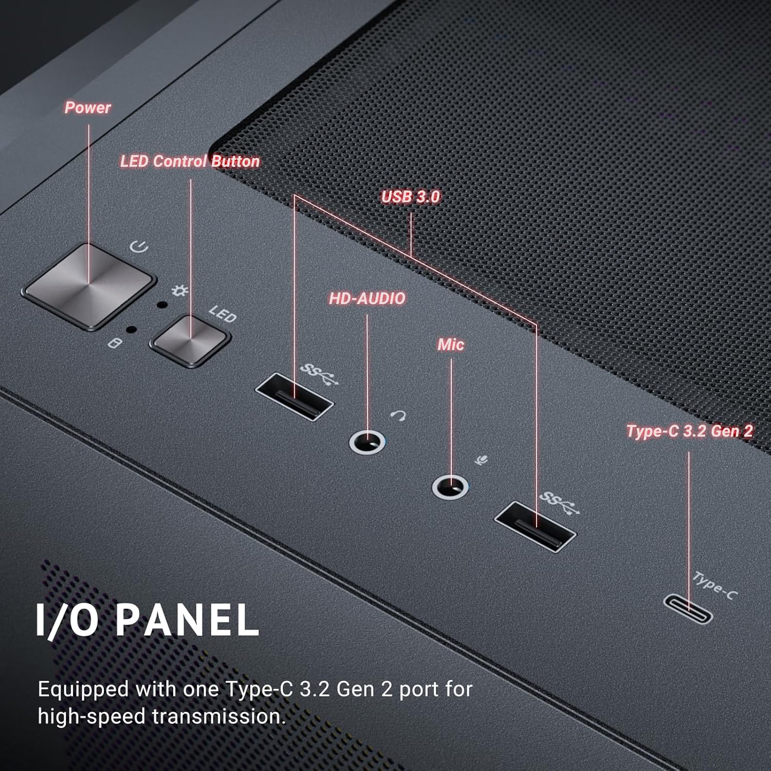 - Carcasa de PC de visión completa con borde sin costuras en el panel frontal y lateral.