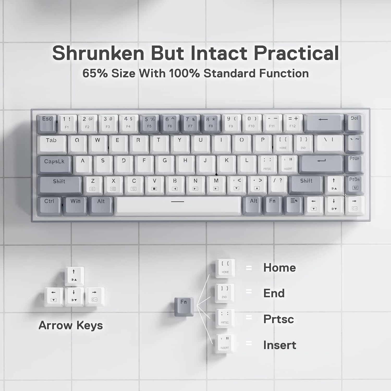 - Diseño con cable de 68 teclas: el diseño Redragon 65% K631 en modo con cable satisface la necesidad del usuario de teclas de flecha separadas y teclas de función adicionales. El diseño delgado ultracompacto y ligero de 68 teclas libera un precioso espacio en el escritorio para menos desorden.